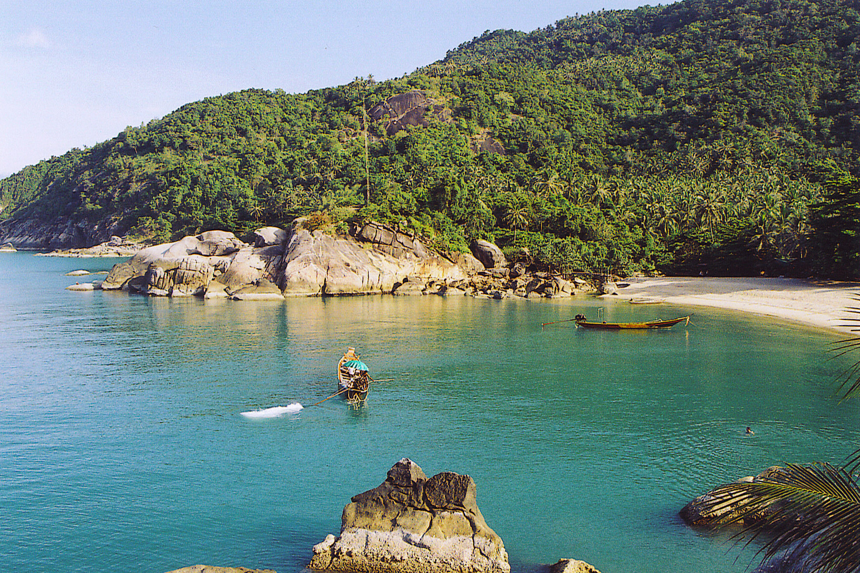 La plage de Than Sadet à Koh Phangan est entourée de grands cocotiers, d'énormes rochers et d'une jungle dense, le tout niché dans un endroit calme et isolé. Cette petite plage a du sable granuleux qui se transforme en sable fin près de l'océan. Dès que vous mettez le pied sur Than
