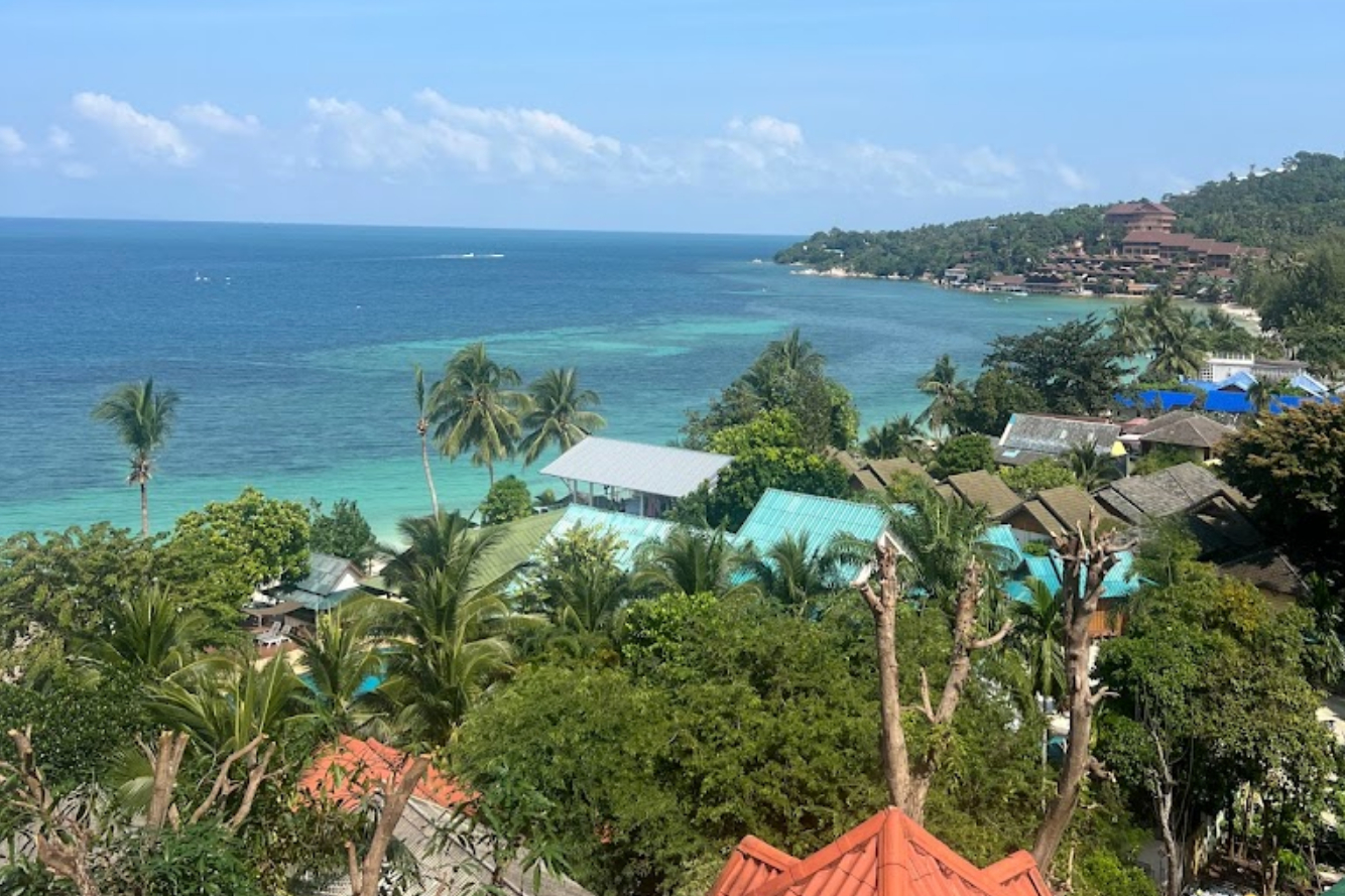 Si trova in cima alla scogliera appena prima di raggiungere Haad Yao sulla strada costiera principale da Thong Sala.